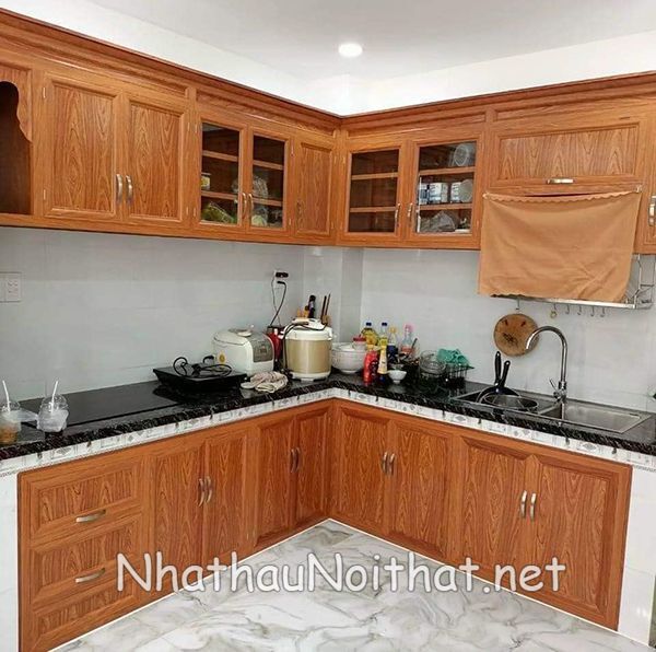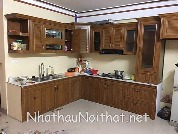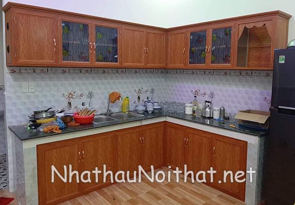 a. Tủ bếp nhôm cỏ (Phân khúc giá rẻ)